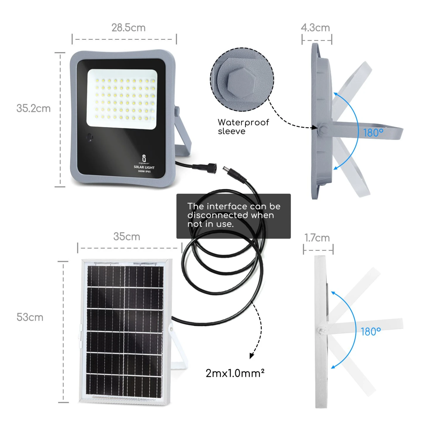 Aigostar Foco Proyector LED Solar Con Mando A Distancia, 300W, 6500K IP65