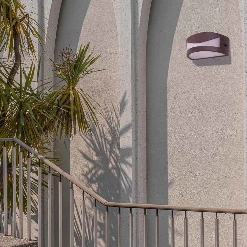 Aplique de pared en color marrón óxido basic. Aplique de aluminio con difusor de pc diseñado para aportar luz ambiental en zonas de exterior. Su acabado marrón óxido lo hace perfecto para la iluminación de urbanizaciones, garajes y otros espacios al aire libre. Protección ip54 frente a posibles salpicaduras de agua. dimensiones: alto 10,80 cm. Largo 22 cm. Ancho 12,10 cm.