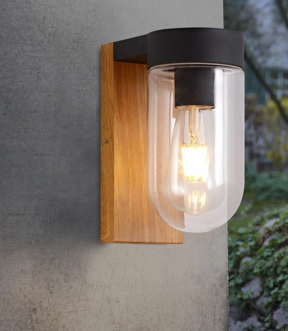 bienvenido al exterior… Para combinar a la perfección con tu decoración exterior, apreciarás la perfecta imitación a madera del aplique cabar. En cuanto a la luz, también es muy natural con su difusor de cristal transparente. Equipa tu lámpara de pared con una bombilla de filamento led para obtener la máxima luz con el efecto más hermoso, mientras ahorras energía. La bombilla led e27 se vende por separado. También disponible en versión baliza y poste para iluminar tus caminos. material principal: metal material secundario: cristal color: haya