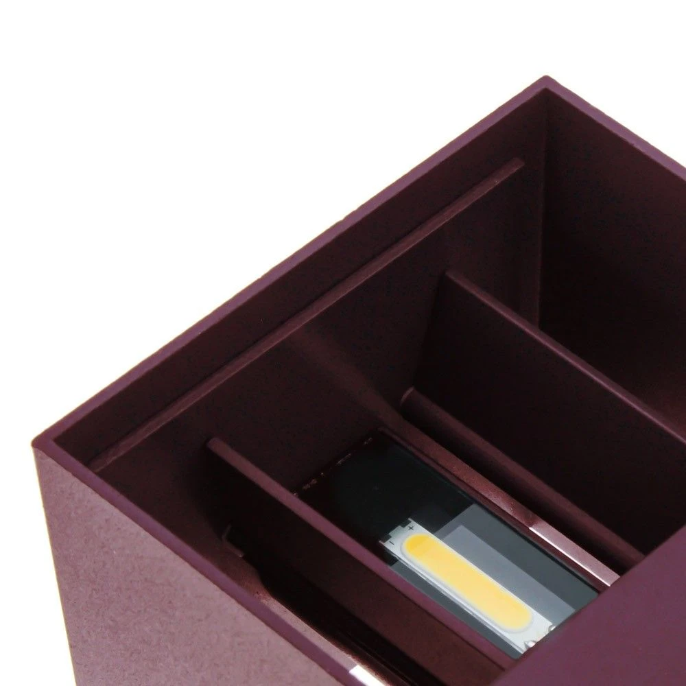 Aplique de pared de color marrón óxido leva. Iluminación led de tono blanco neutro proyectada de manera directa e indirecta. Puedes ajustar el ángulo de apertura de cada luz creando diferentes iluminaciones en la pared. El acabado marrón óxido del aplique encaja a la perfección en urbanizaciones y garajes.dimensiones: alto 10 cm. Largo 10 cm. Ancho 10 cm.