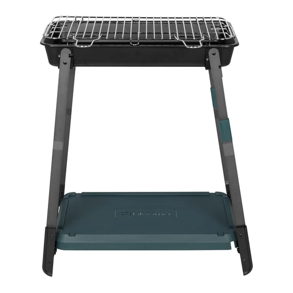Material: parrilla y estructura de acero. Patas y tapa de plástico resistente.