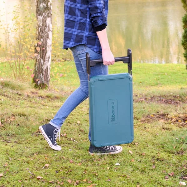 Diseño optimizado y ligero para utilizar allí donde la necesites: incluye tapa que también podrás utilizar como bandeja inferior de apoyo y patas plegables que te servirán de asas para transportar con facilidad.