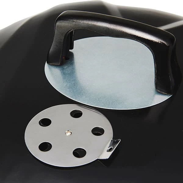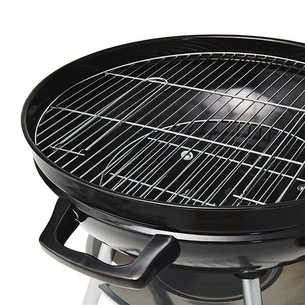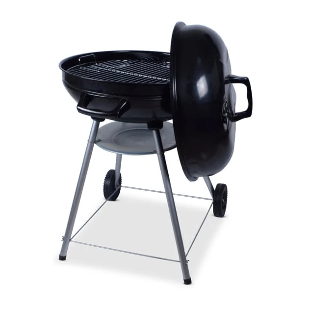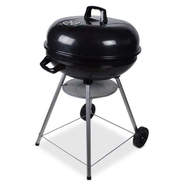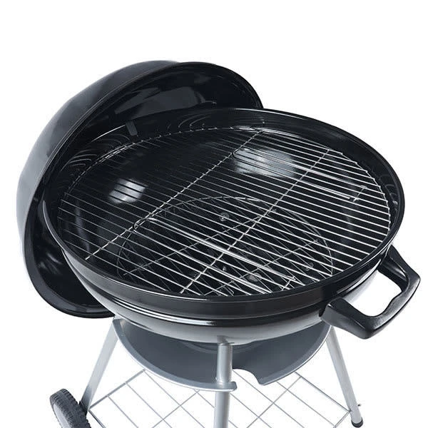Barbacoa de carbón Russel Kettle con tapa, fabricada en acero esmaltado color negro.Parrilla de 54 x 54 cm cromada.Incluye 2 tiradores, 1 soporte, 2 ruedas, 1 parrilla.Las ruedas te permiten moverla fácilmente a cualquier lugar.Cocinar en el exterior es ideal para disfrutar de buenos momentos con la familia y amigos.