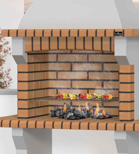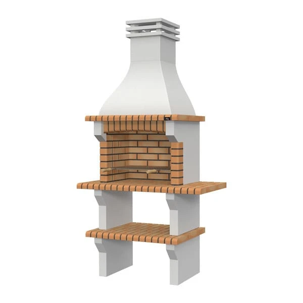 La barbacoa de obra Roma trae consigo todos los básicos para disfrutar de comidas y cenas al aire libre. La zona de cocción admite como combustible la leña pequeña y carbón. También permite adaptar cajones para la colocación de las parrillas y recogida de cenizas.