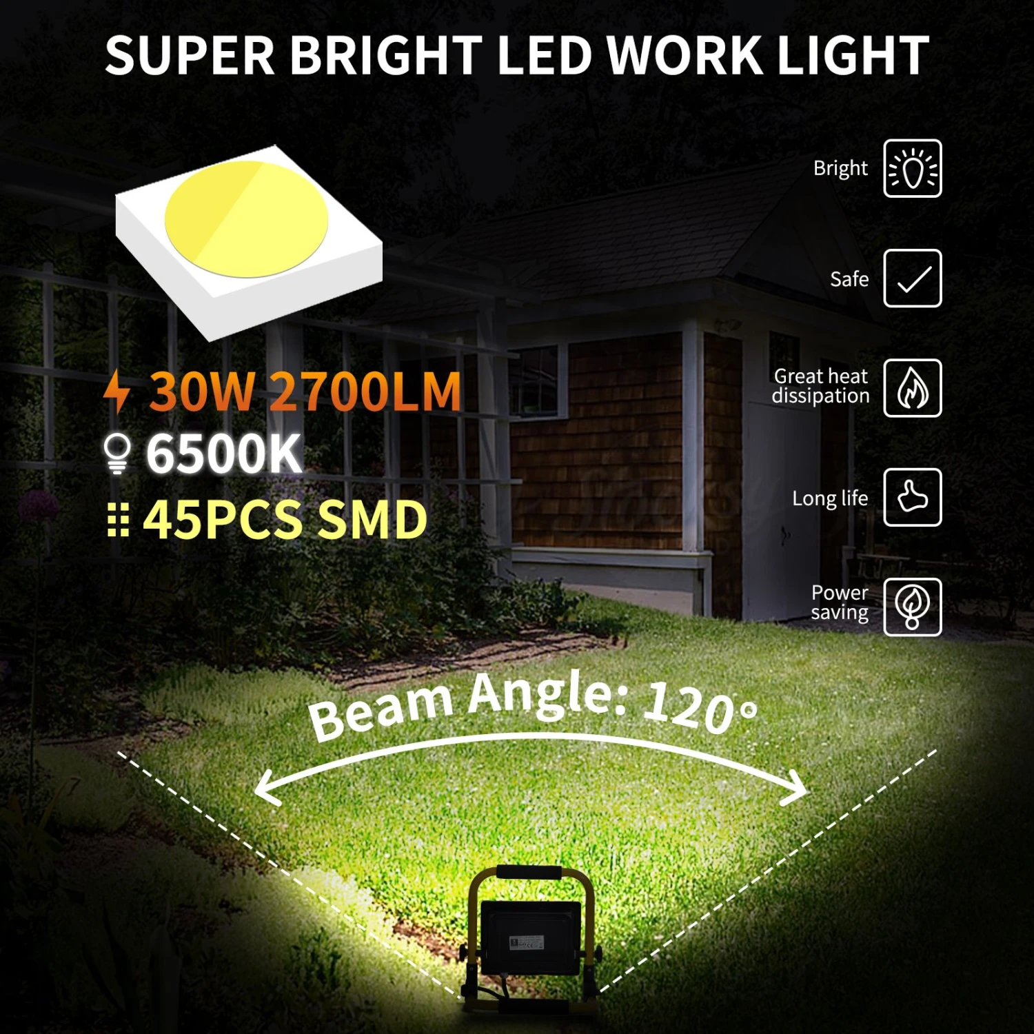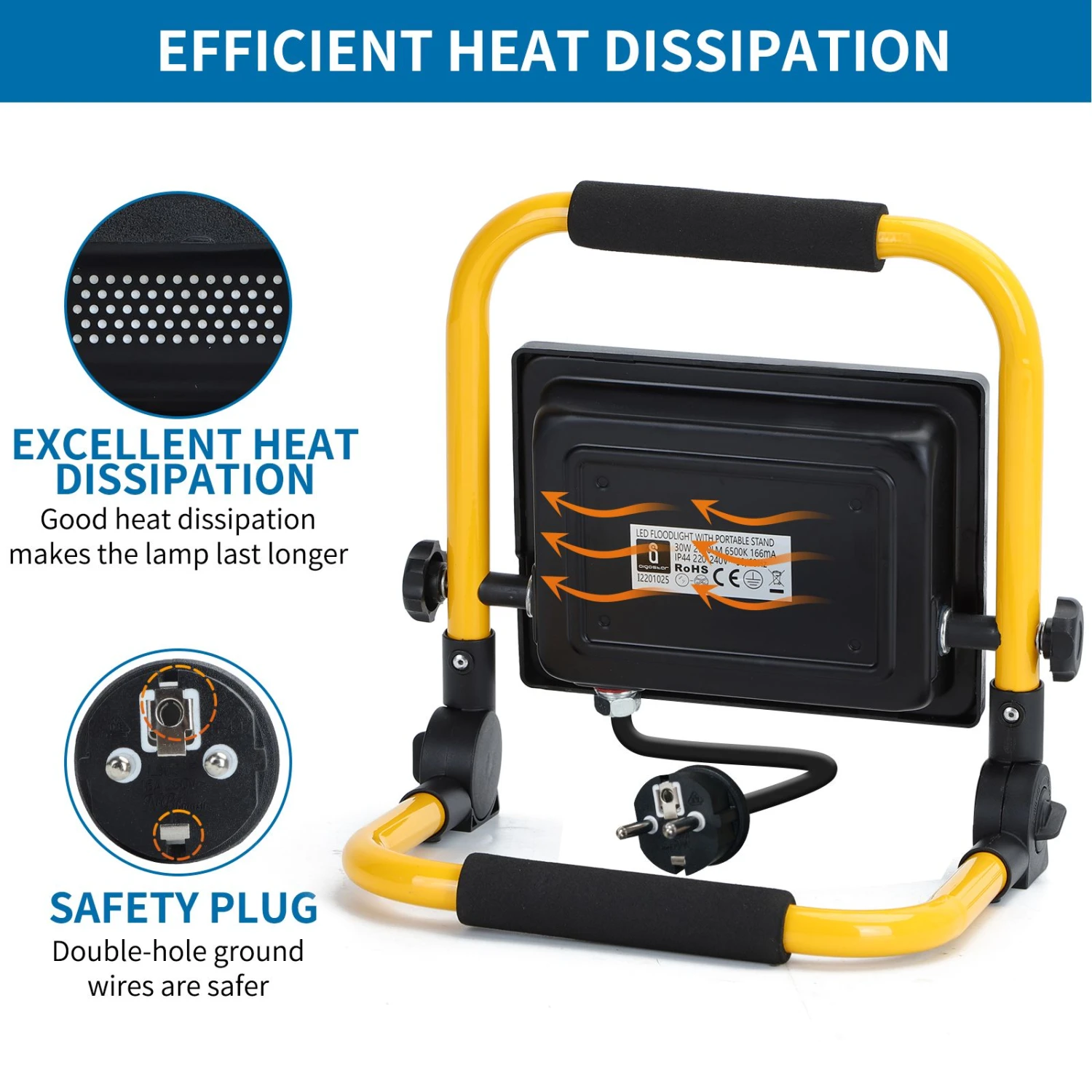 【súper luminosidad & ahorro de energía】 la aigostar focos led trabajo proporciona una luminosidad de 2700 lúmenes con solo 30 watios de consumo, lo que equivale a 270w de consumo de un antiguo foco, por lo que conseguirá hasta un 85% de ahorro en la factura de la luz. 【buena disipación de calor】 el foco led portátil tiene chips led de gran calidad y durabilidad de hasta 25.000 horas, la carcasa de aluminio puede lograr una rápida disipación de calor y una larga vida efectiva de luz. 【alto grado de protección】 sellado con silicona, la protección garantiza que el focos led es resistente al agua y al calor,muy adecuado para uso en interiores y exteriores. 【portátil & versátil】 el soporte portátil de la luz de trabajo es giratoria 360 grados, lo que permite ajustar la iluminación a cualquier lugar en que la necesite, además dispone de función de bloqueo, mango de transporte ergonómico. Equipado con una base plegable para un fácil almacenamiento. 【múltiples usos】 la luz de trabajo led tiene un cable de 1.8 metros lo que permite una gran distancia con respecto al enchufe, su instalación es muy sencilla y se transporta fácilmente. Úselo para obras de construcción, garajes, iluminación auxiliar exterior, iluminación adicional en el taller etc. 【características técnicas】material : aluminio. Color: negro.