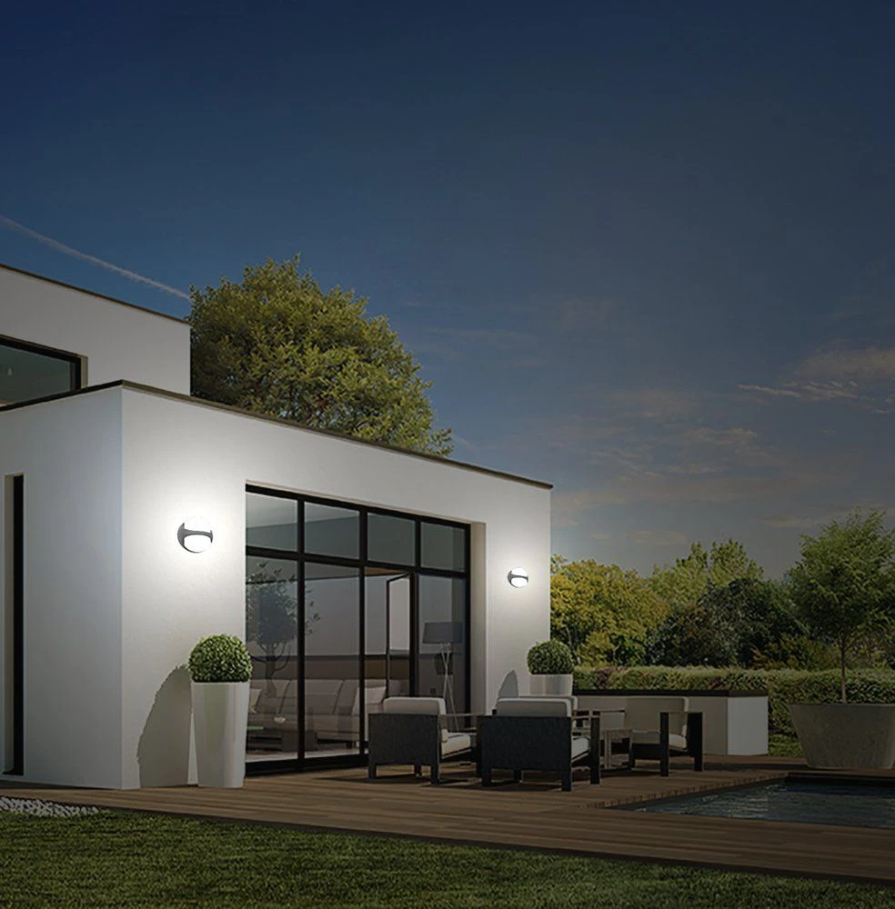 luz de pared led integrada. ¡gracias a su protección contra la intemperie ip44 y su estilo moderno, podrás iluminar tu espacio exterior e interior con un diseño único! temperatura de color blanco cálido 3000k para un ambiente cálido. Acabado antracita