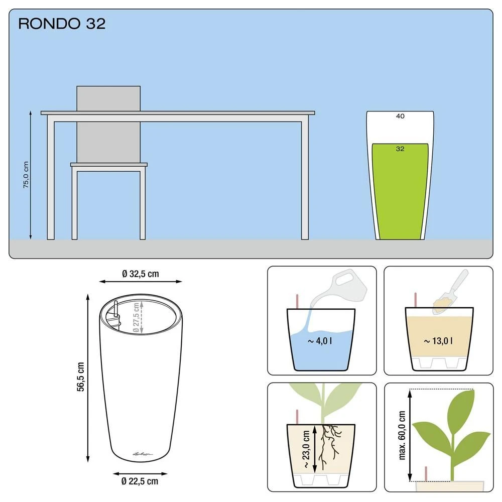 LECHUZA Olla Rondo Premium 32 – Kit Completo, Negro Brillante ø 32 Cm