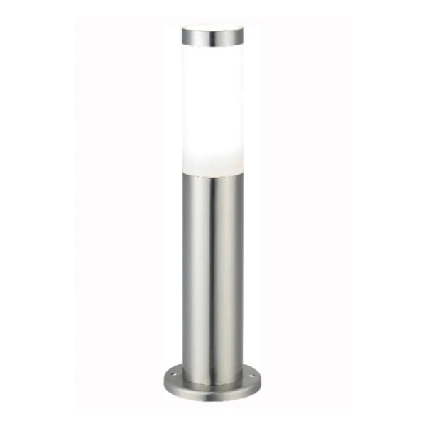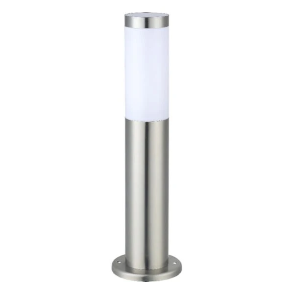 Farola de diseño contemporáneo para iluminar la zona exterior y adornar tu jardín. De alto 45 x ancho 7,6 cm y color acero inoxidable. Grado de protección IP44 con resistencia al agua. La bombilla no está incluida, puedes elegir entre nuestra gama el color de luz adecuado para el espacio a iluminar.