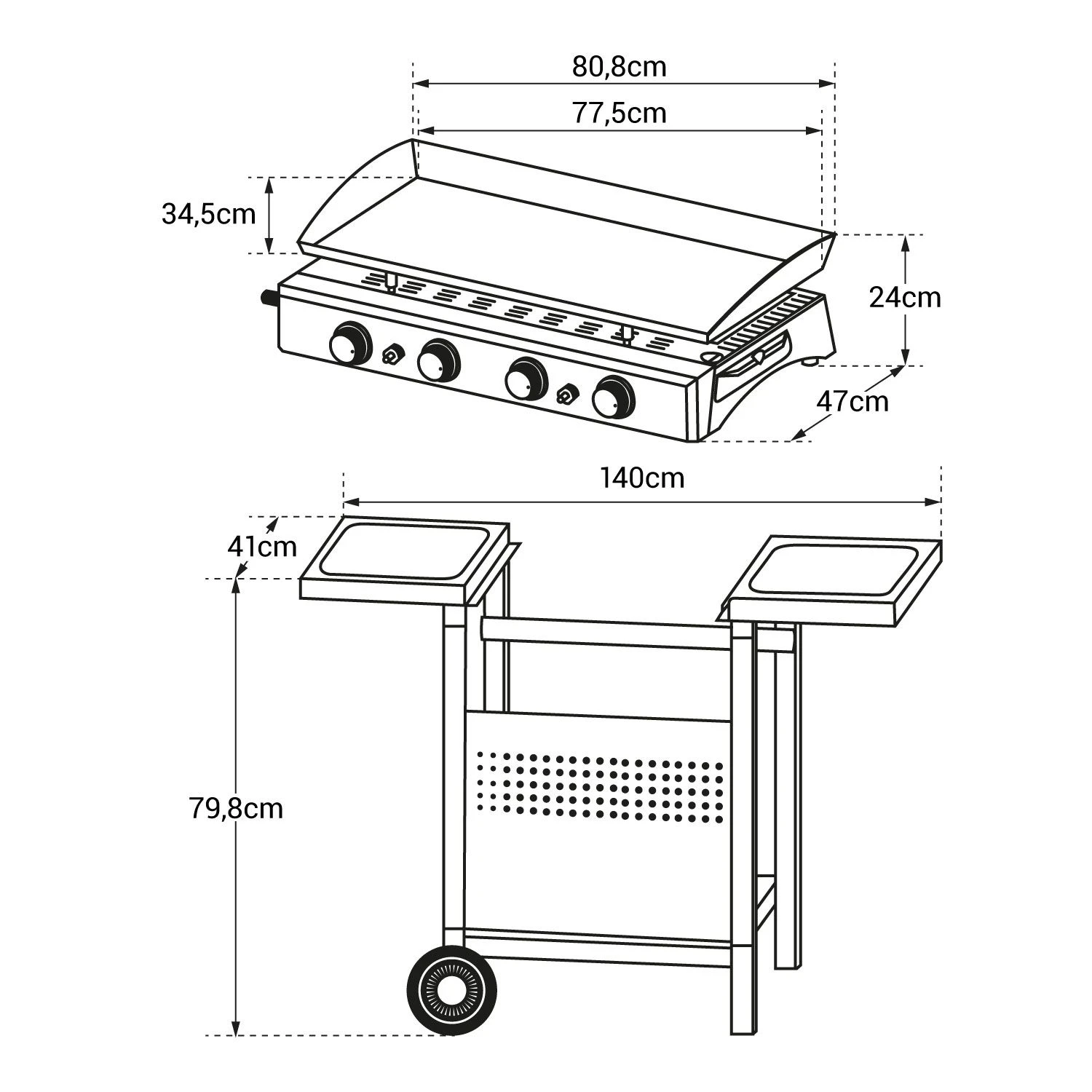 Plancha De Gas Valencia – 4 Quemadores 10kw + Carrito