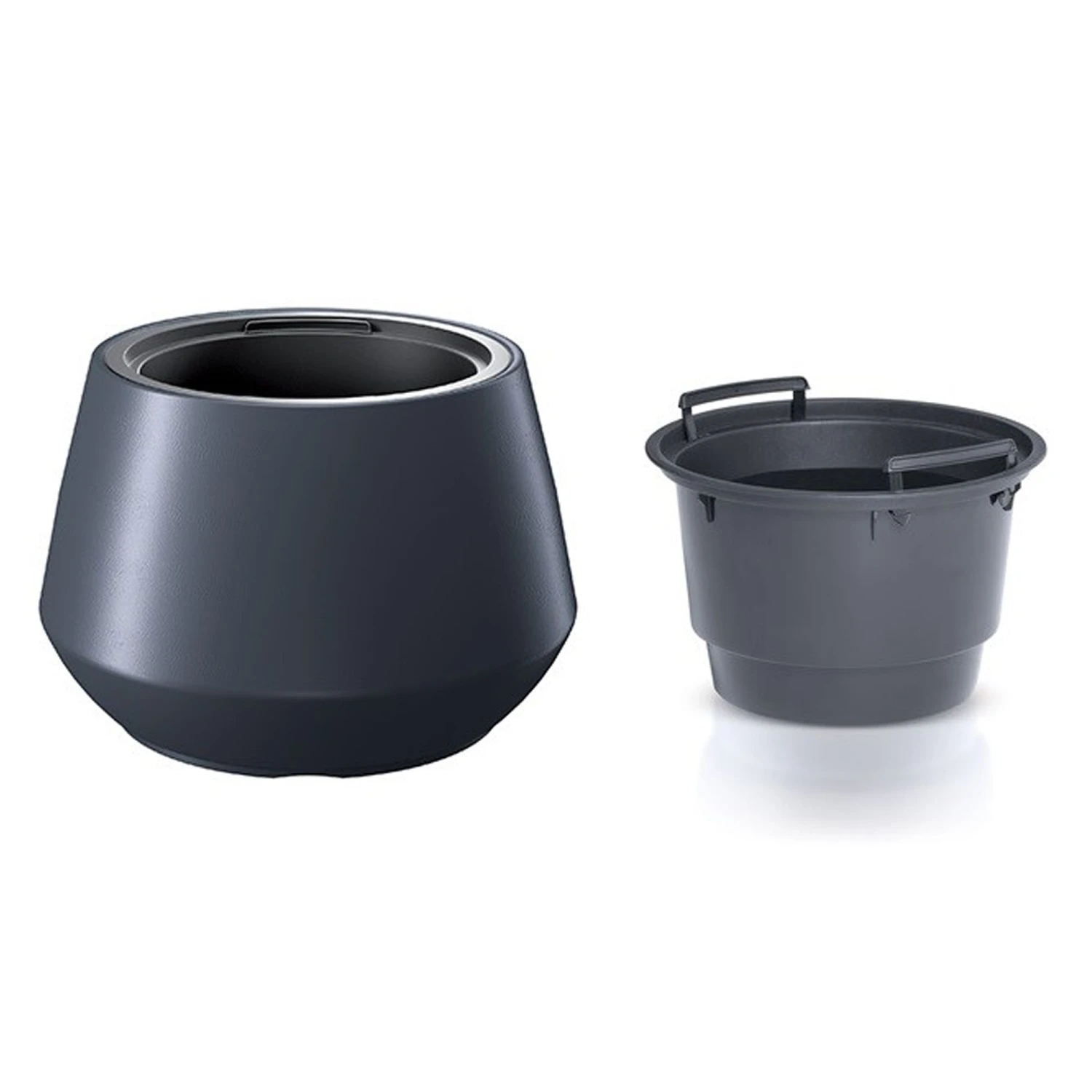 Set 2 en 1: macetero que incluye un depósito interior adaptado que reduce la cantidad de tierra necesaria.