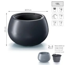 Prosperplast Maceta HEOS 18L., Con Depósito, 370x370x230, Color Antracita